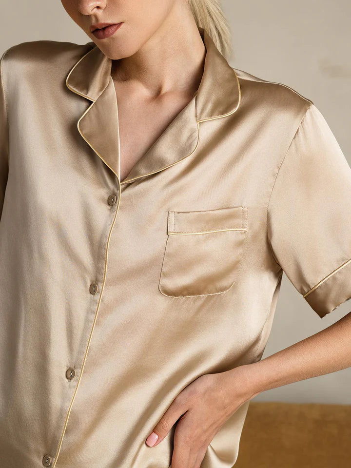 Pure Silk Pajamas Short Pjs Set 2Pcs