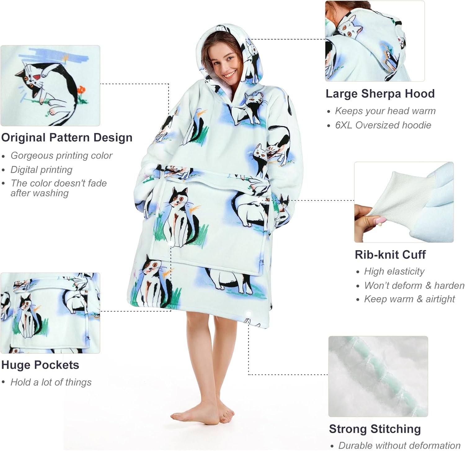 Every blanket hoodie is made with premium, durable materials, designed to keep you cozy season after season. We’re confident you’ll love the comfort and warmth—but if you don’t, we offer a hassle-free return policy for a full refund.